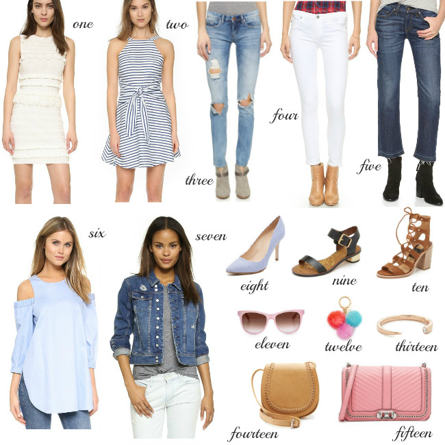 Now that March has arrived, I have all things spring on my mind, and all I want to do is lighten up my wardrobe. Although we still have some cold weather to get through here in the Northeast before I am running around in sundresses, I can't help but to start transitioning my wardrobe. The timing couldn't be any better for this as Shopbop is having their spring sale! I'm sharing with you my top picks from the sale, along with some items I want to add to my closet for the spring and summer. A cropped, flare jean is on the top of my list, and I am loving this pair from Rag & Bone. Block heels are a must have this spring, and this lace up pair is calling my name. And of course, you know my love for everything off the shoulder, but this cold shoulder top is stealing my heart. The sale runs until Saturday, but I always like to shop early before sizes get low!